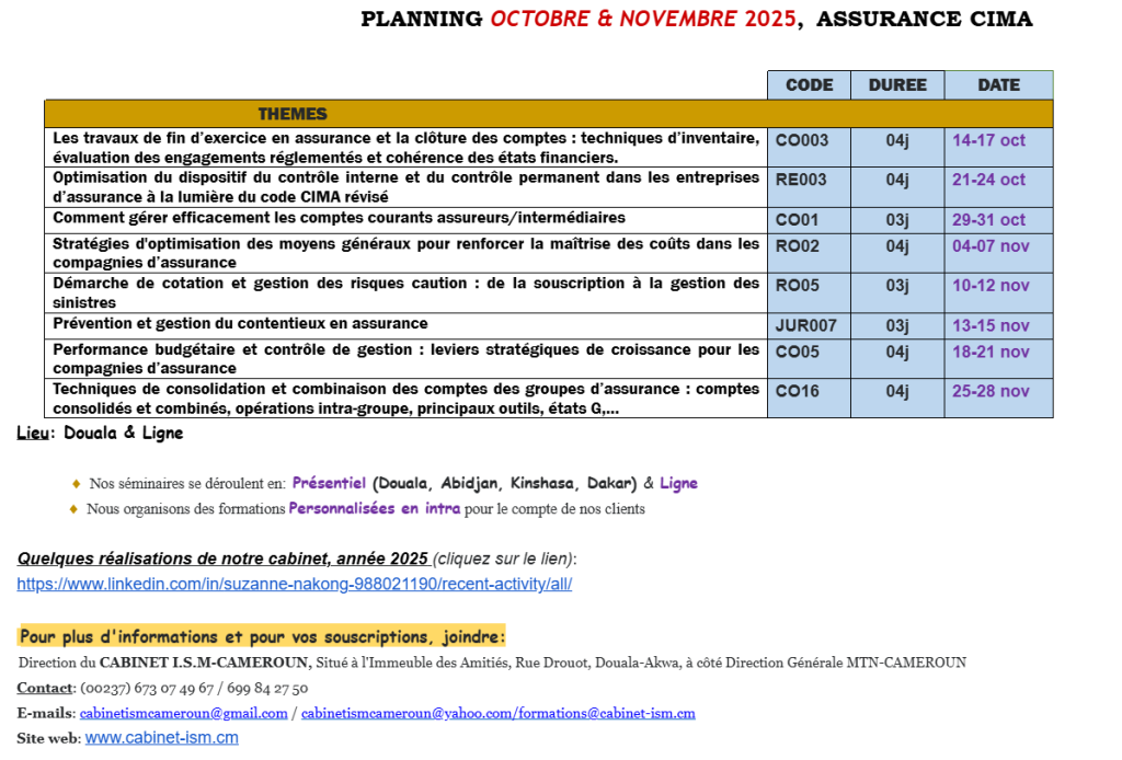 Du 04 au 07 Novembre 2025 en Présentiel (Douala, Abidjan, Kinshasa, Dakar) & en Ligne
